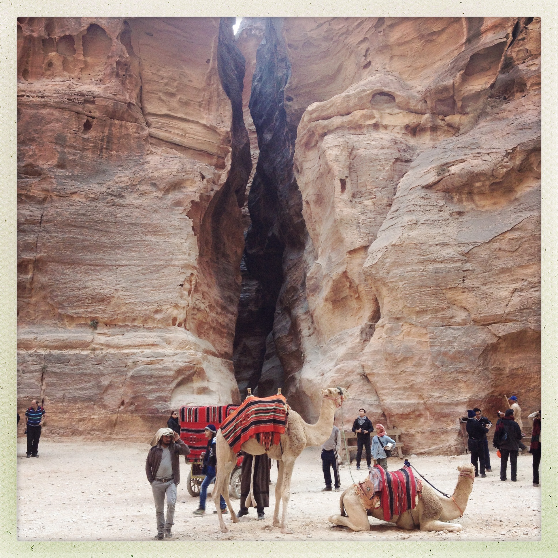It was weird walking down to the Siq passing three tour groups with at least 50 people in each group. Just before we arrived at The Treasury there was so much noise echoing against all the cliff faces mainly the sound of horses galloping across the concrete floors pulling what seemed like very un-sturdy carriages. So different from the peace and tranquillity of the morning before.