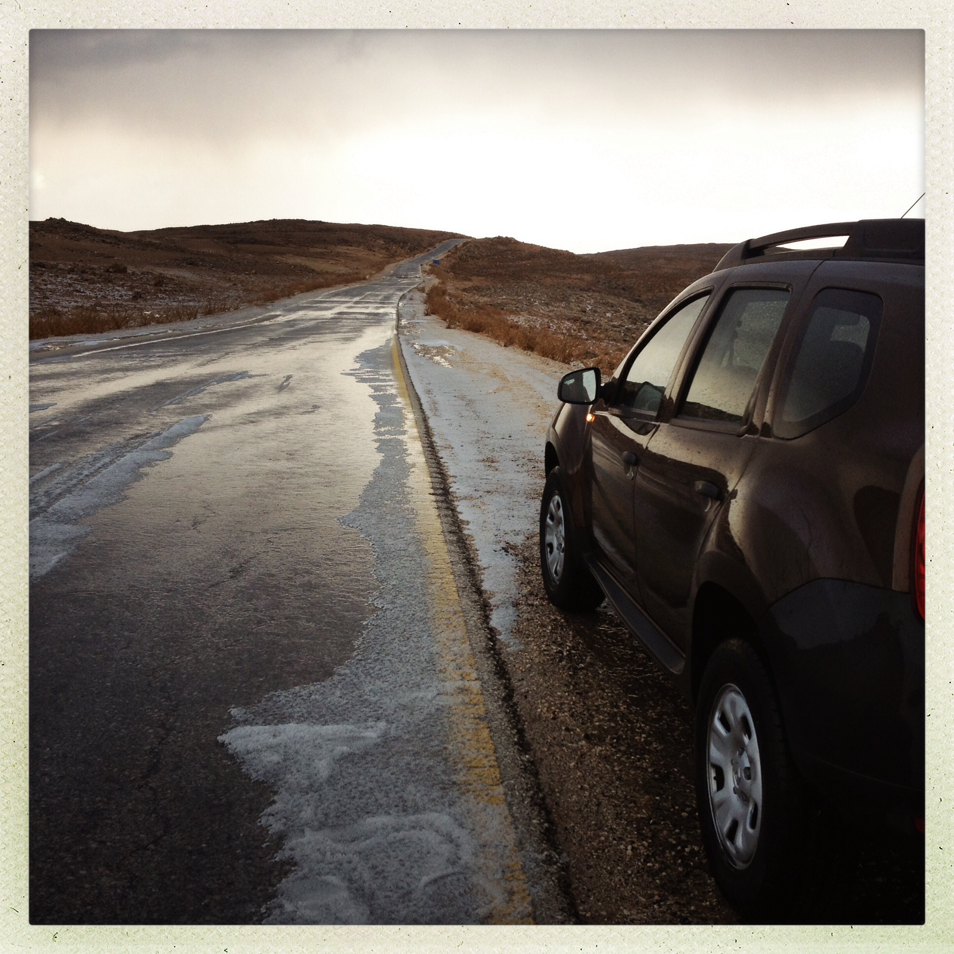 Back on the road and suddenly we found ourselves crossing the desert plains after a massive hailstorm. It looked like it had snowed! In the desert!